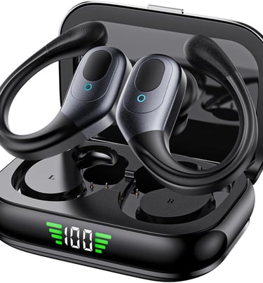 Fones de Ouvido Sem Fio Esportivos, 80h de Reprodução com LED Display, Bluetooth 5.3 Esportivos com Gancho, IPX7 à Prova d'Água, Graves Profundos, Compatível com iOS e Android para Esportes/Treino