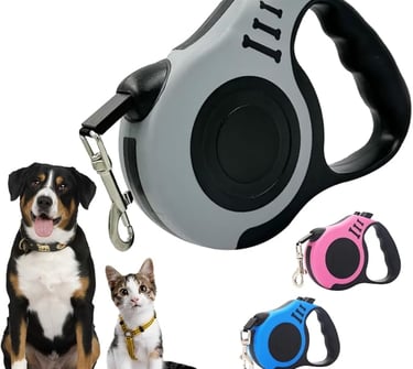 Coleira Guia Retrátil para Cachorros e Gatos 5 Metros – Trela de Passeio Automática em Poliéster Reforçado com Trava de Segurança e Gancho 360°, Resistente e Confortável para Pets até 20kg